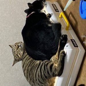 昨年入会された女性、初めての作品が仕上がりました。 ガラスカットは集中力を切らさず早いでした。 ルーターで削る作業は慣れないので時間がかかりました。 初めてのハンダ付け、初心者にしては上手でした。 今日は保護ネコたちが元気でした。 いつものような穏やかさはなく煩いくらいでした。